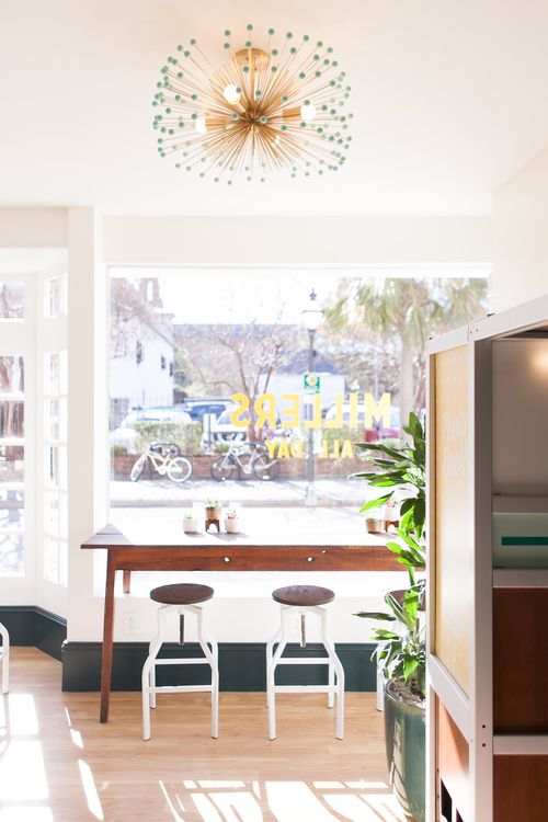 Think of Millers All Day JI as the fraternal twin to the Downtown location which has the same mid-century vibes but less "farm house" and more "beach house".